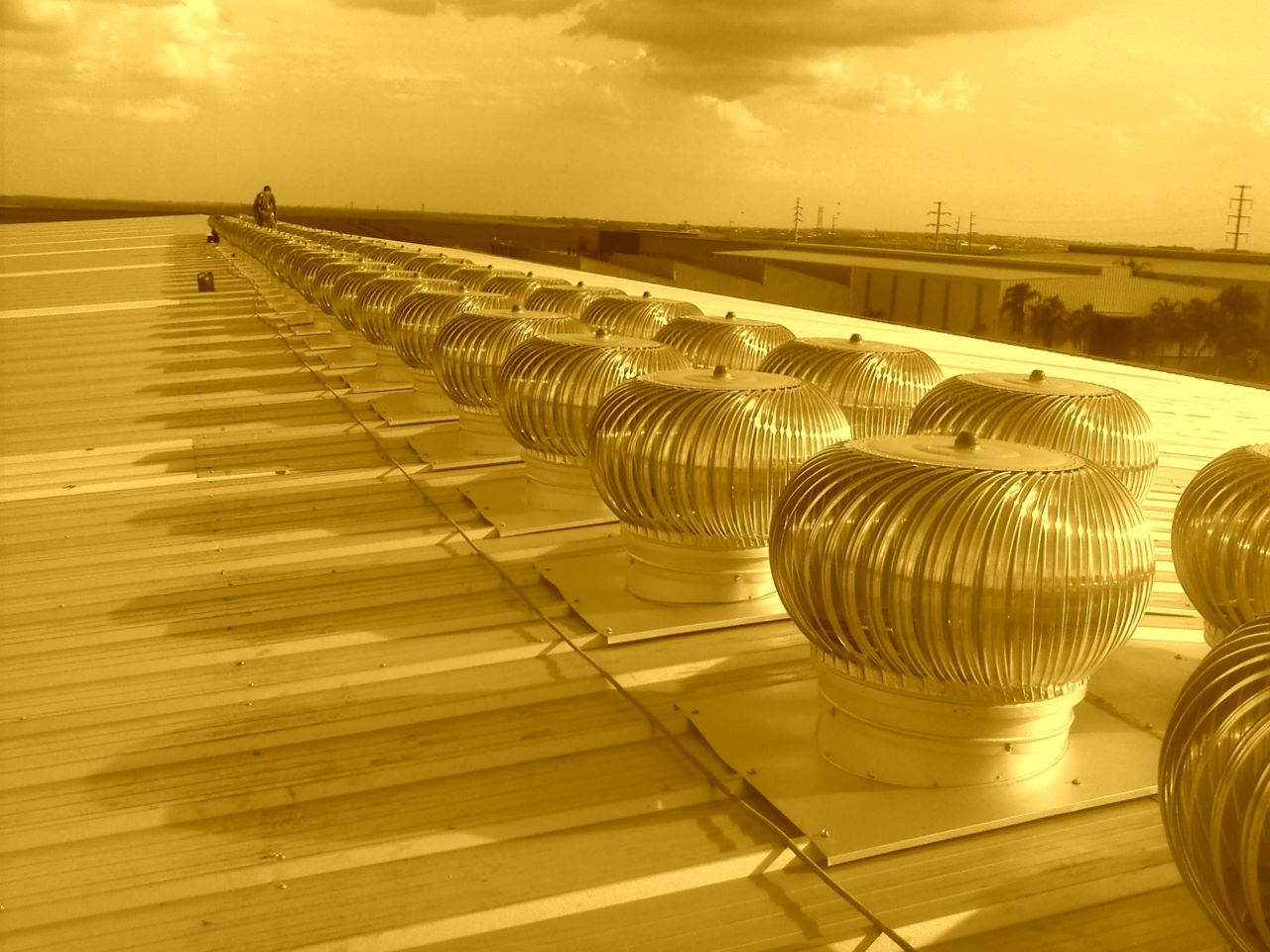 Os exaustores eólicos Ipanema são aparelho s que removem a camada de ar quente acumulada, proporcionando conforto e um ambiente adequado à produtividade. Seu funcionamento acontece devido ao seu formato esférico, que consequentemente é impulsionado pela corrente de ar externa. Mesmo na ausência de ventos a massa de ar quente ascendente exerce uma pressão no interior do globo do exaustor fazendo com que o mesmo gire. O seu movimento puxa o ar para fora, possibilitando a entrada de ar frio pelas portas e janelas restabelecendo assim o equilíbrio térmico. Os exaustores eólicos devem ser instalados na parte mais alta do telhado e a sua boa eficiência está diretamente relacionado ao número de peças indicados.